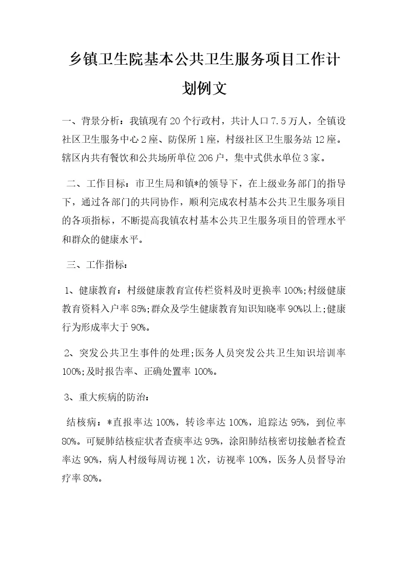 乡镇卫生院基本公共卫生服务项目工作计划例文