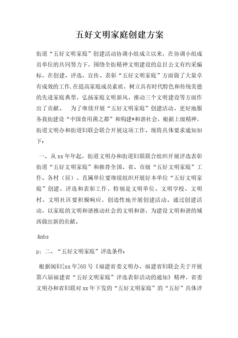 五好文明家庭创建方案