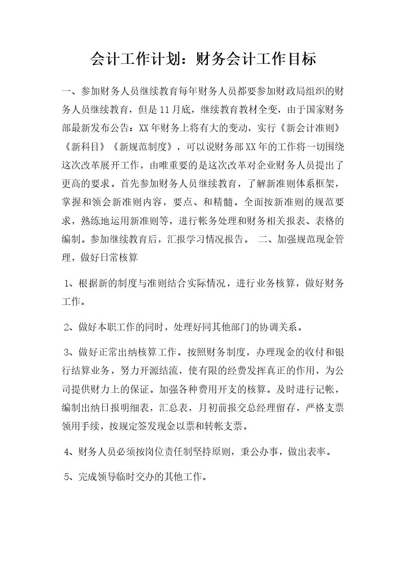 会计工作计划:财务会计工作目标