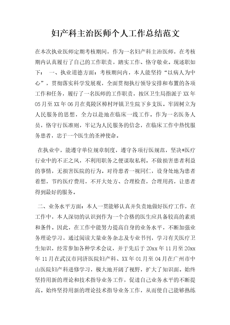 妇产科主治医师个人工作总结范文