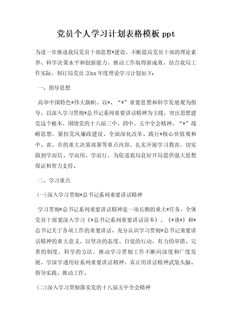 党员个人学习计划表...