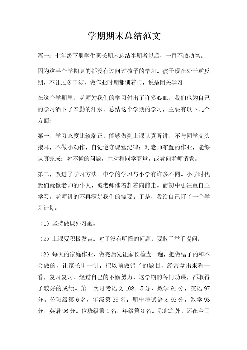学期期末总结范文