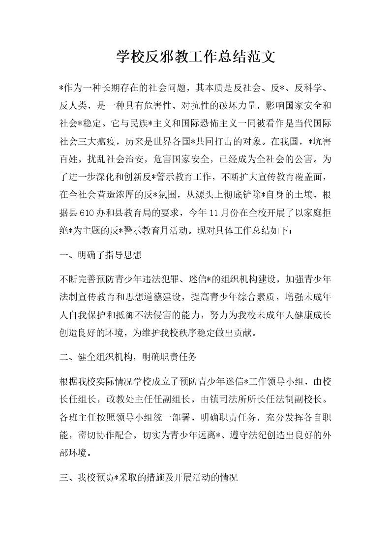 学校反邪教工作总结范文