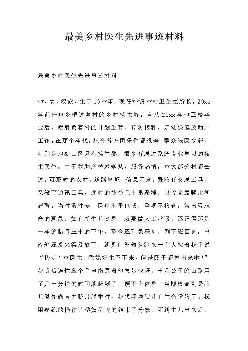 最美乡村医生先进事迹材料_1