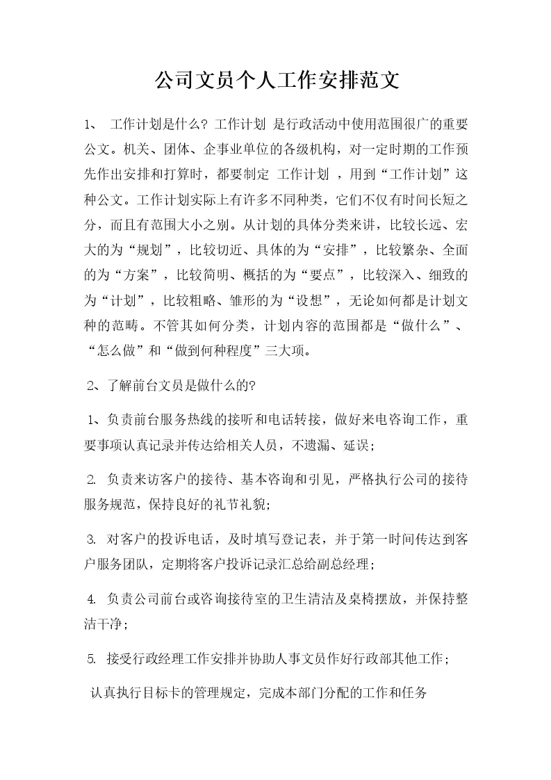 公司文员个人工作安排范文