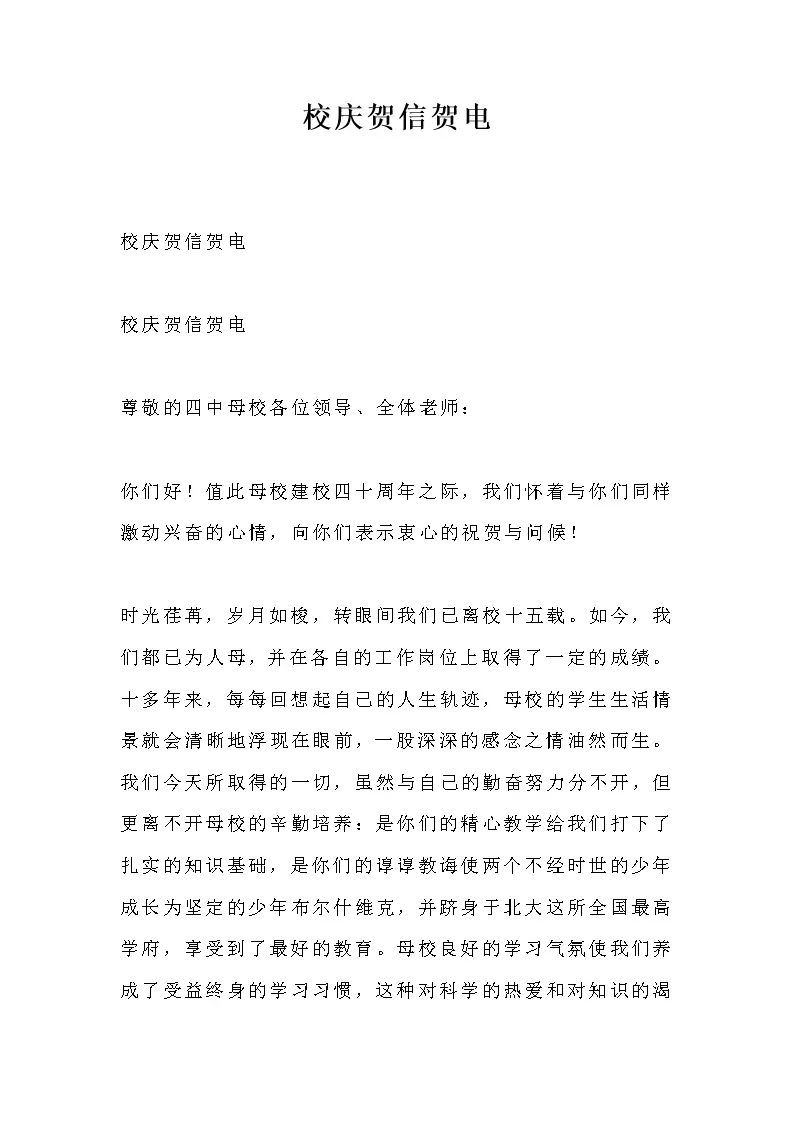 校庆贺信贺电