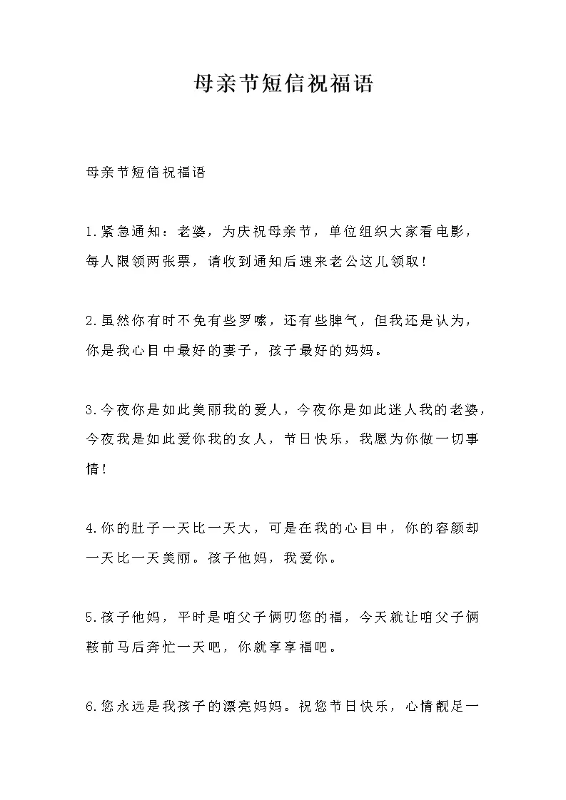 母亲节短信祝福语