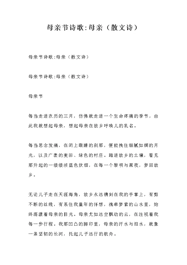 母亲节诗歌母亲散文诗