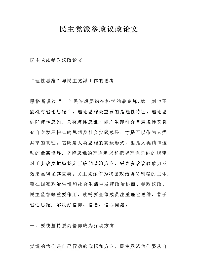 民主党派参政议政论文