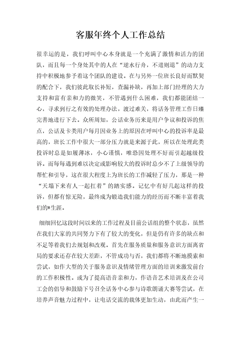 客服年终个人工作总结
