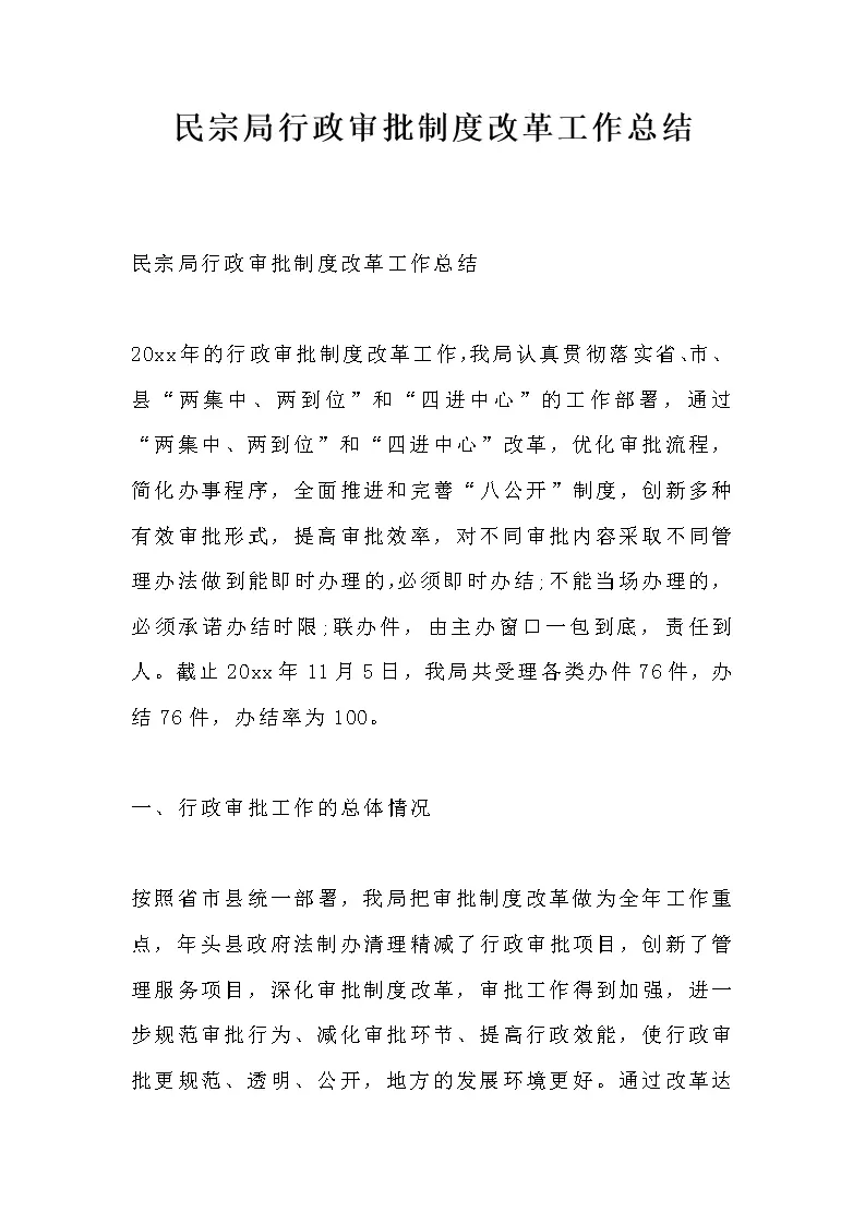 民宗局行政审批制度改革工作总结