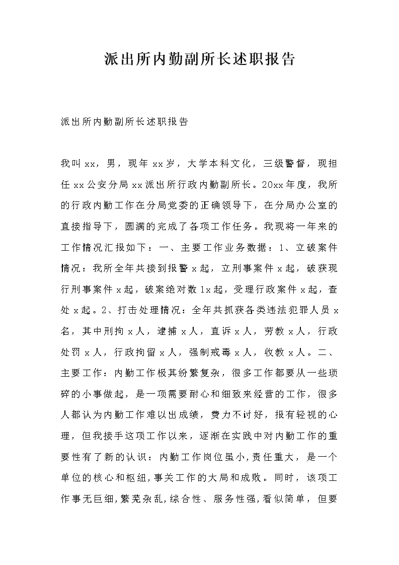 派出所内勤副所长述职报告