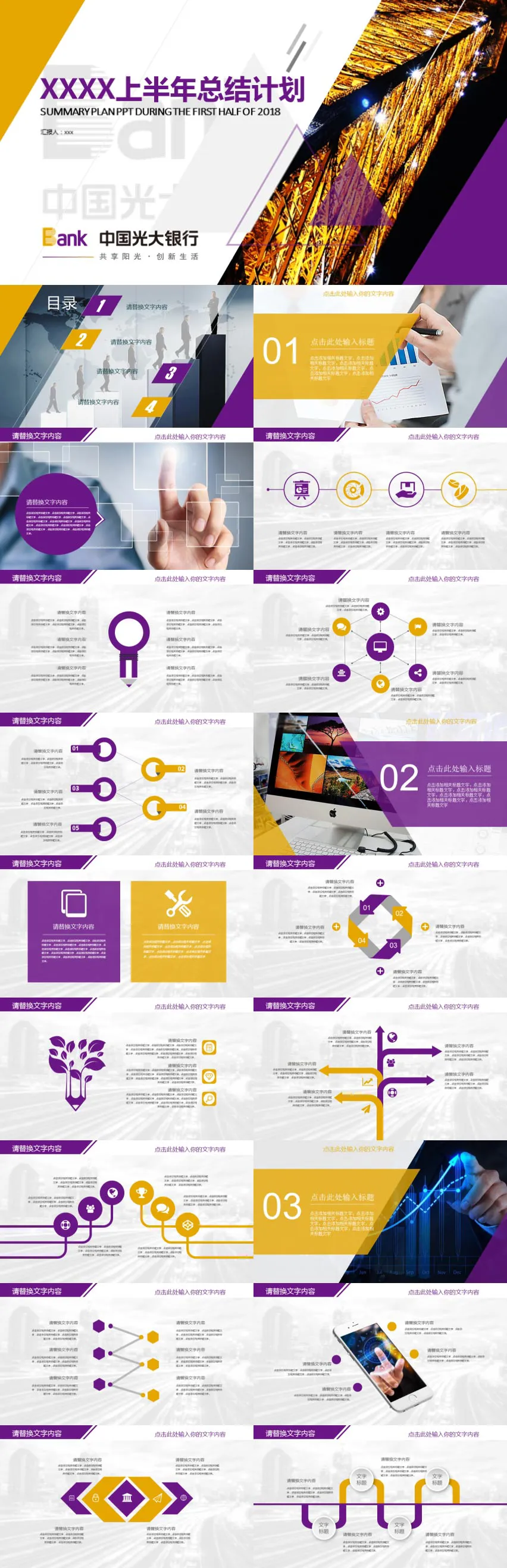 黄紫银行半年总结计划PPT模板