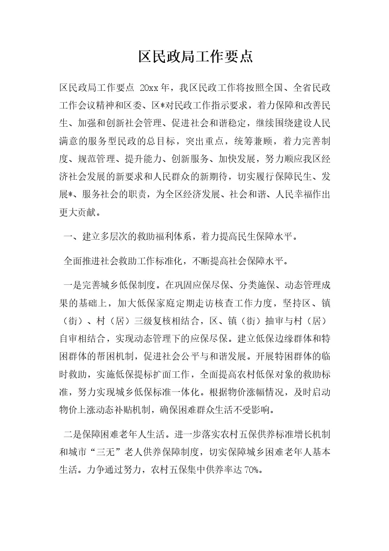 区民政局工作要点