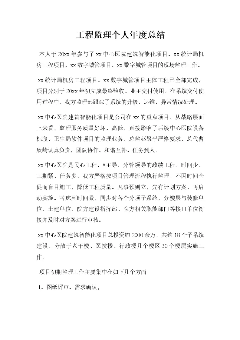 工程监理个人年度总结