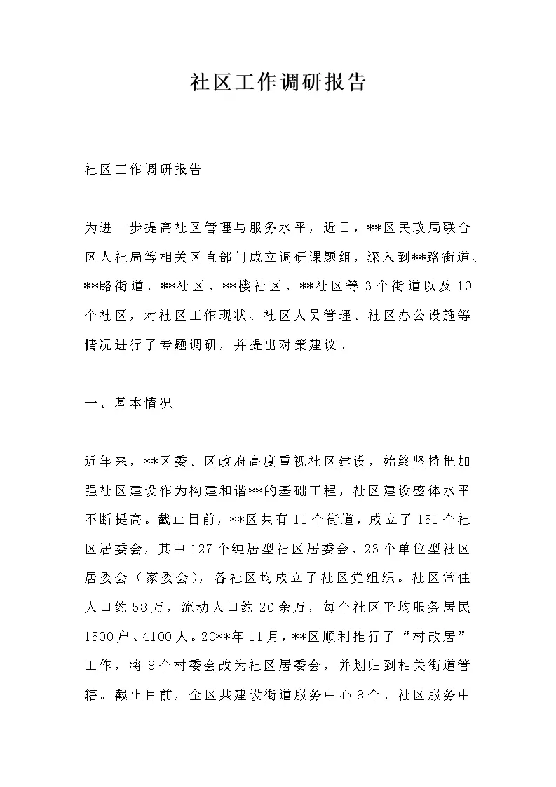 社区工作调研报告