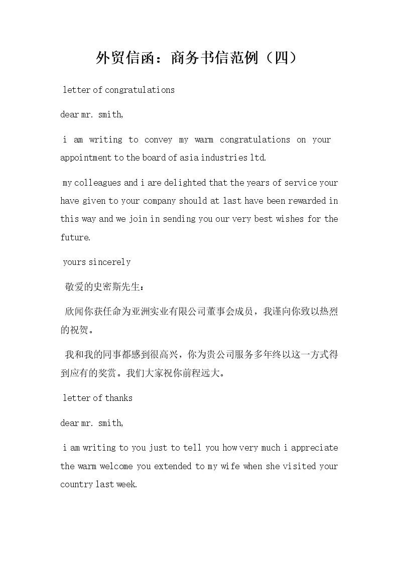 外贸信函:商务书信范例(四)