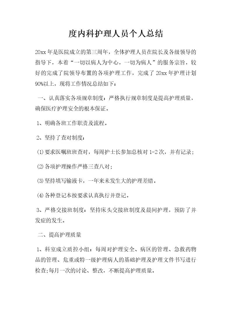 度内科护理人员个人总结