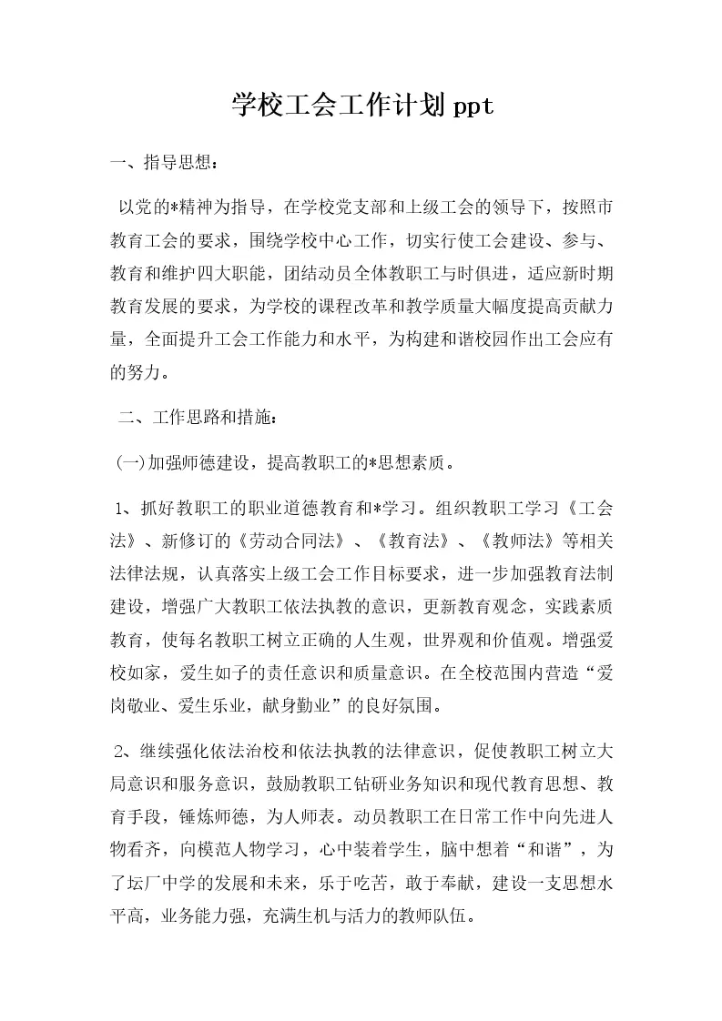 学校工会工作计划ppt