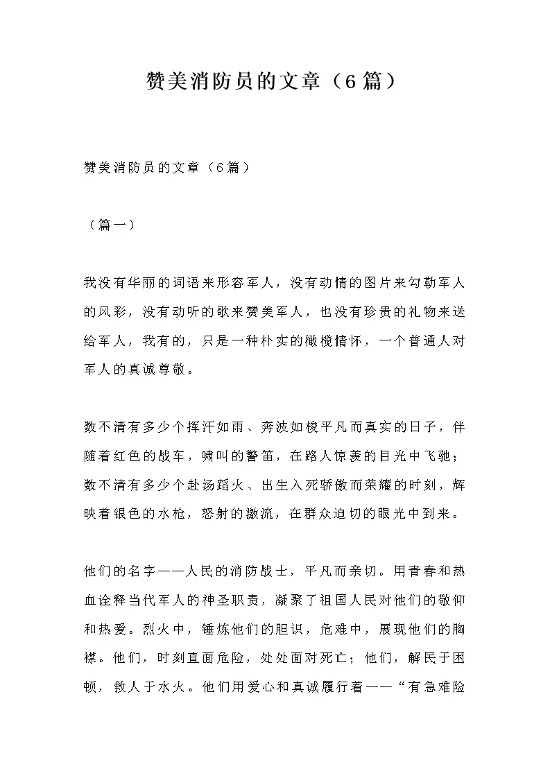 赞美消防员的文章篇