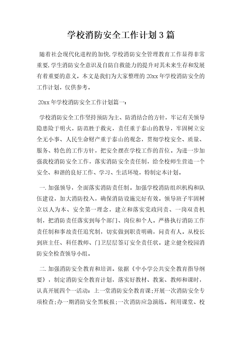 学校消防安全工作计划3篇