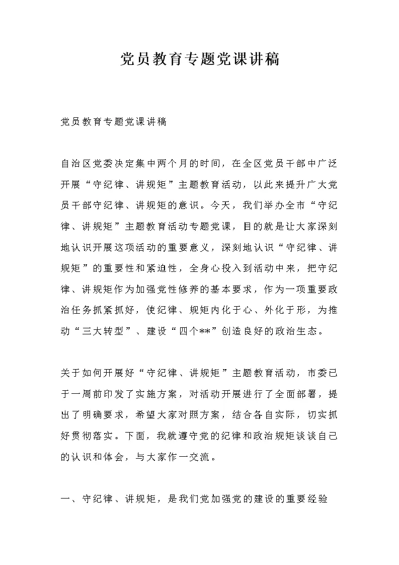 党员教育专题党课讲稿