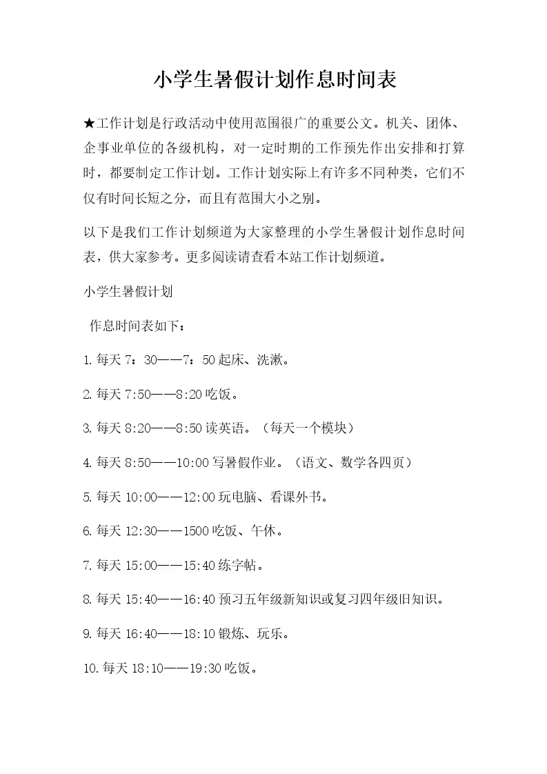 小学生暑假计划作息...