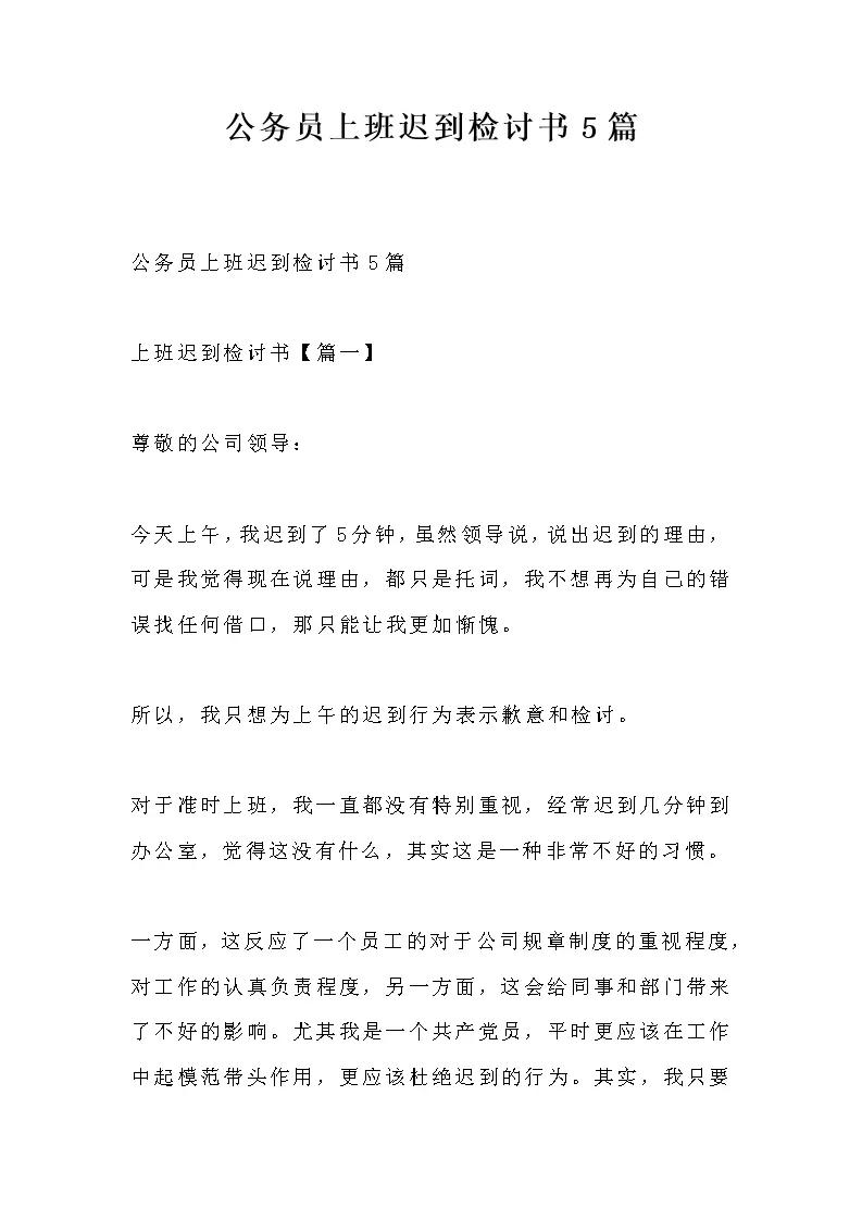 公务员上班迟到检讨...