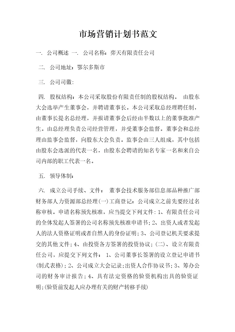 市场营销计划书范文