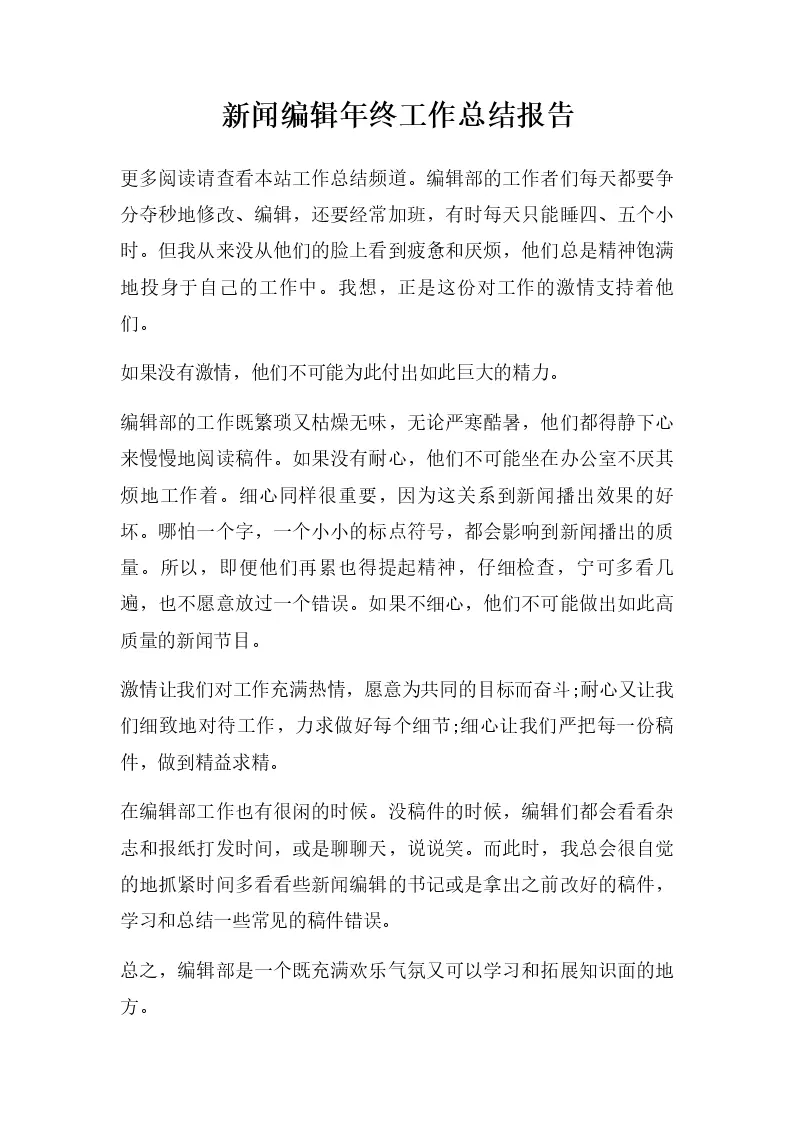 新闻编辑年终工作总结报告