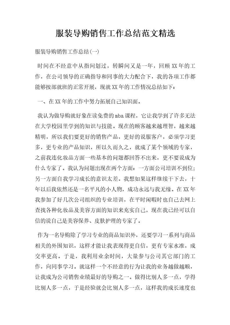 服装导购销售工作总结范文精选
