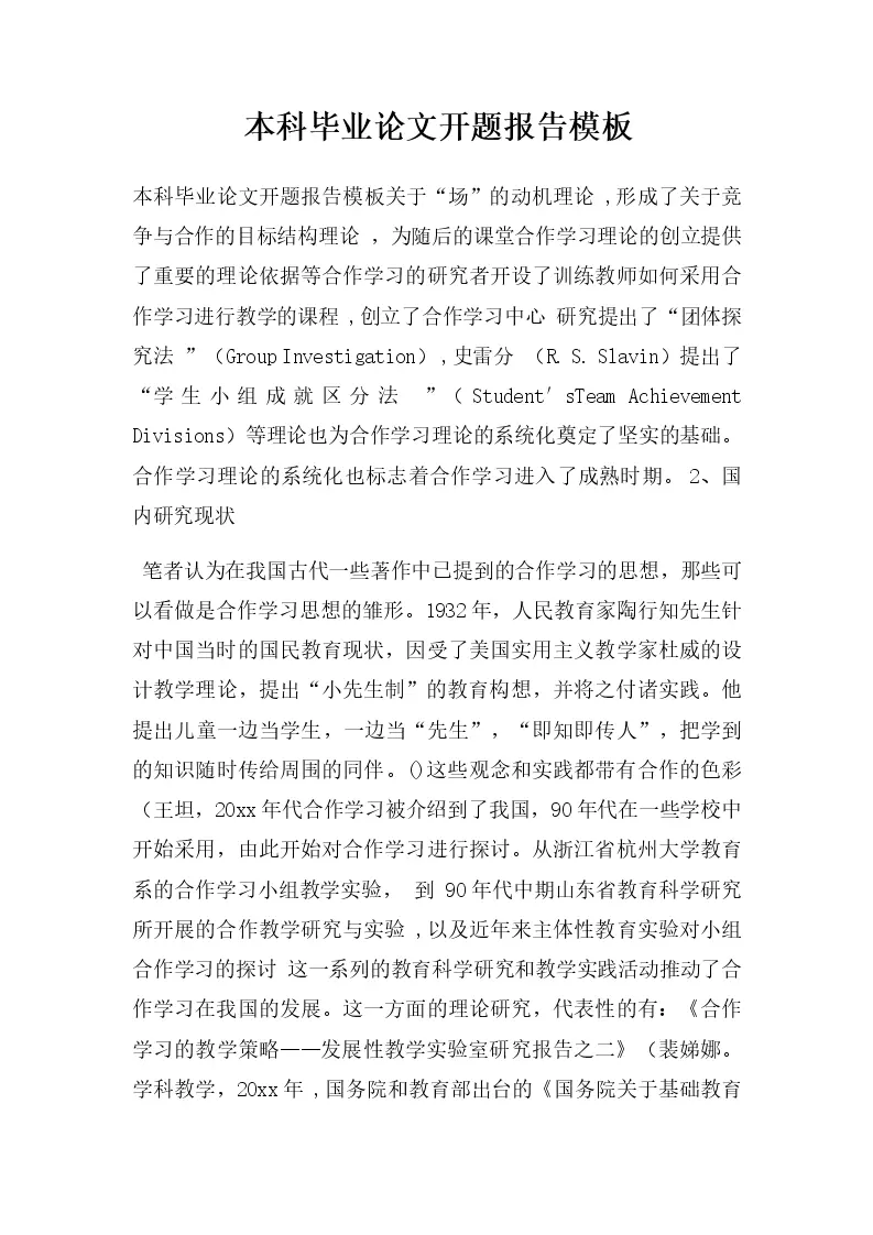 本科毕业论文开题报告模板