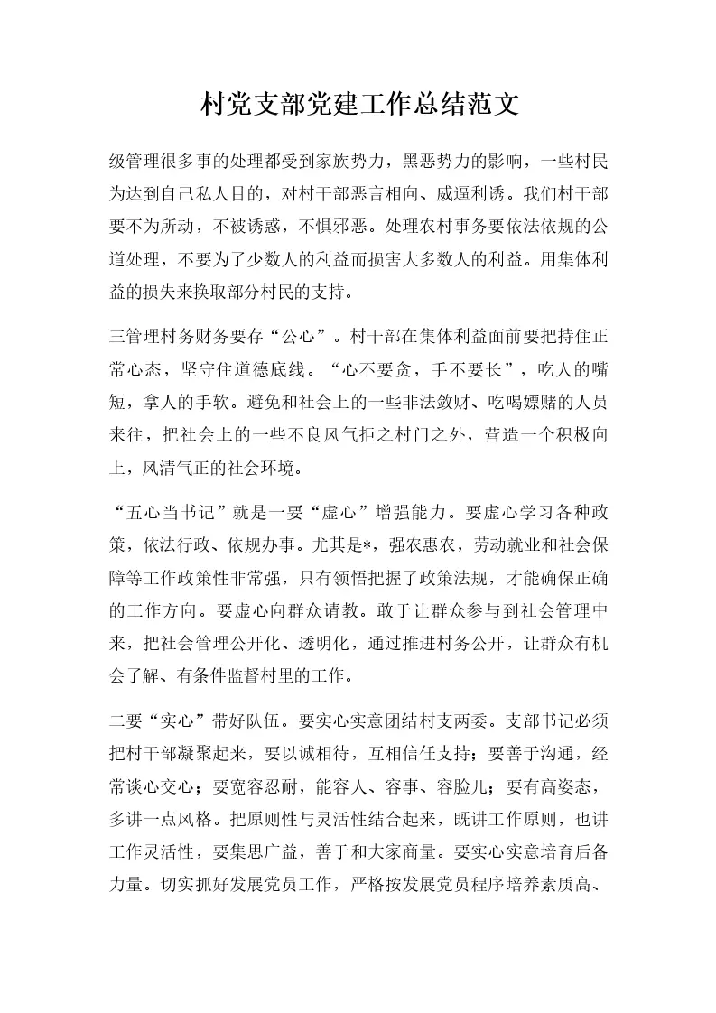 村党支部党建工作总结范文