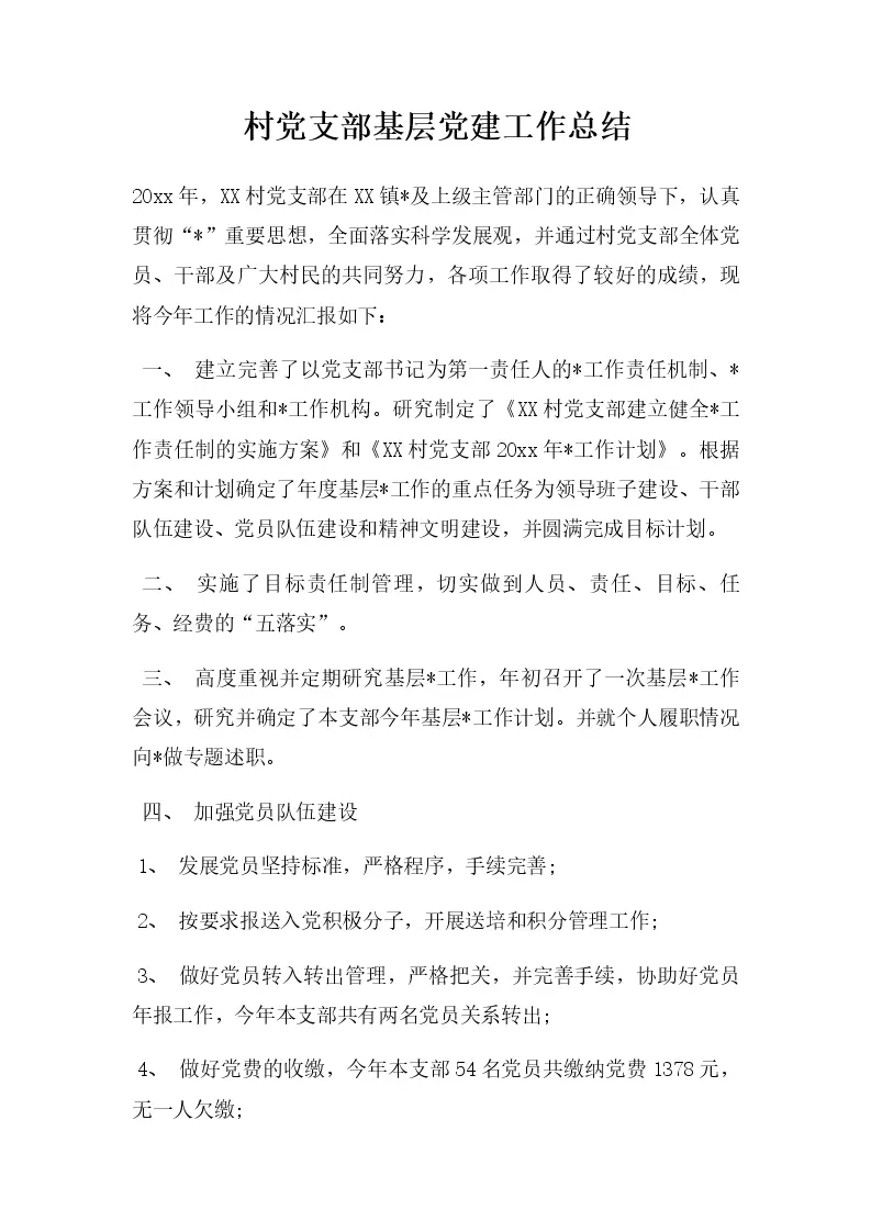 村党支部基层党建工作总结
