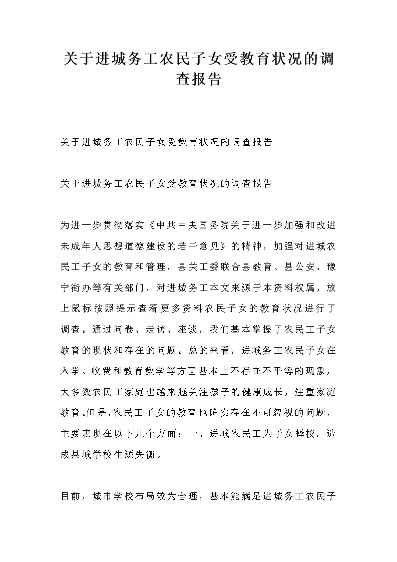 关于进城务工农民子女受教育状况的调查报告