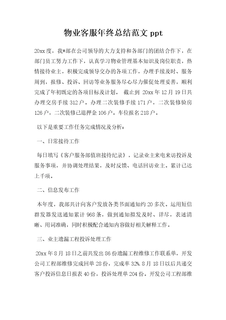 物业客服年终总结范文ppt