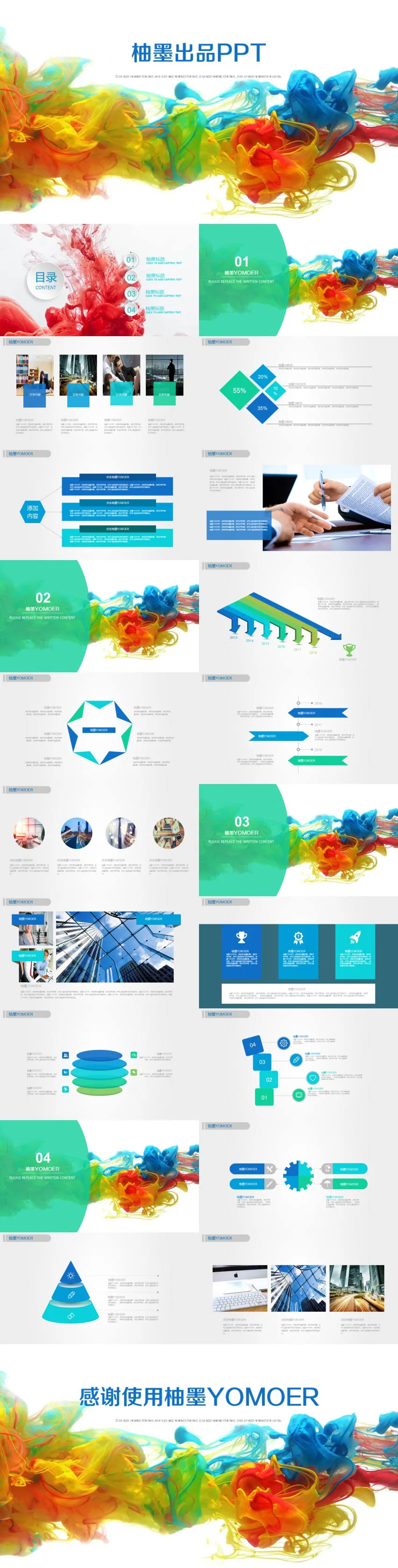 多彩水墨晕染背景PPT模板
