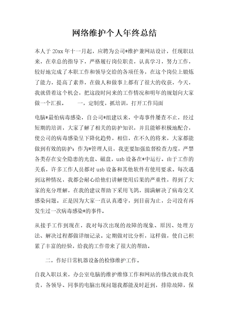 网络维护个人年终总结