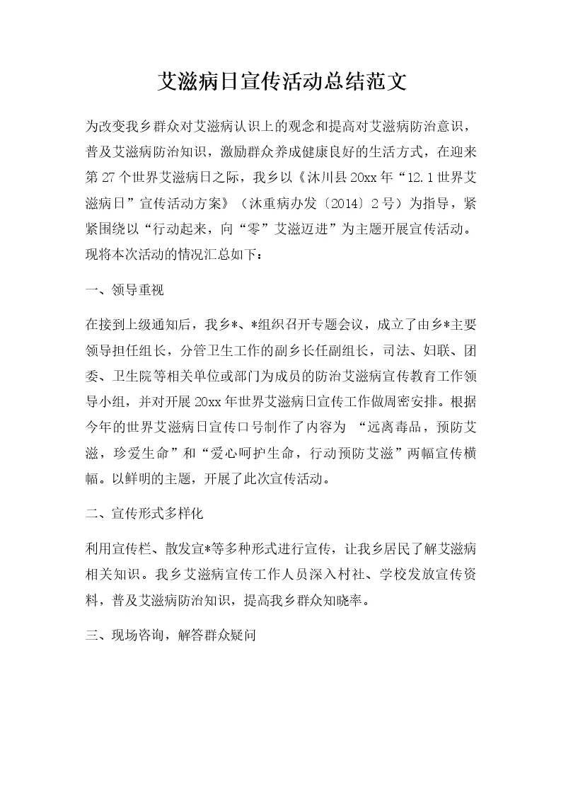 艾滋病日宣传活动总结范文