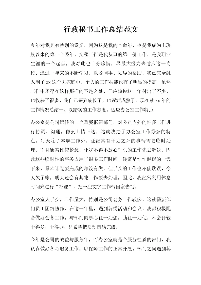 行政秘书工作总结范文