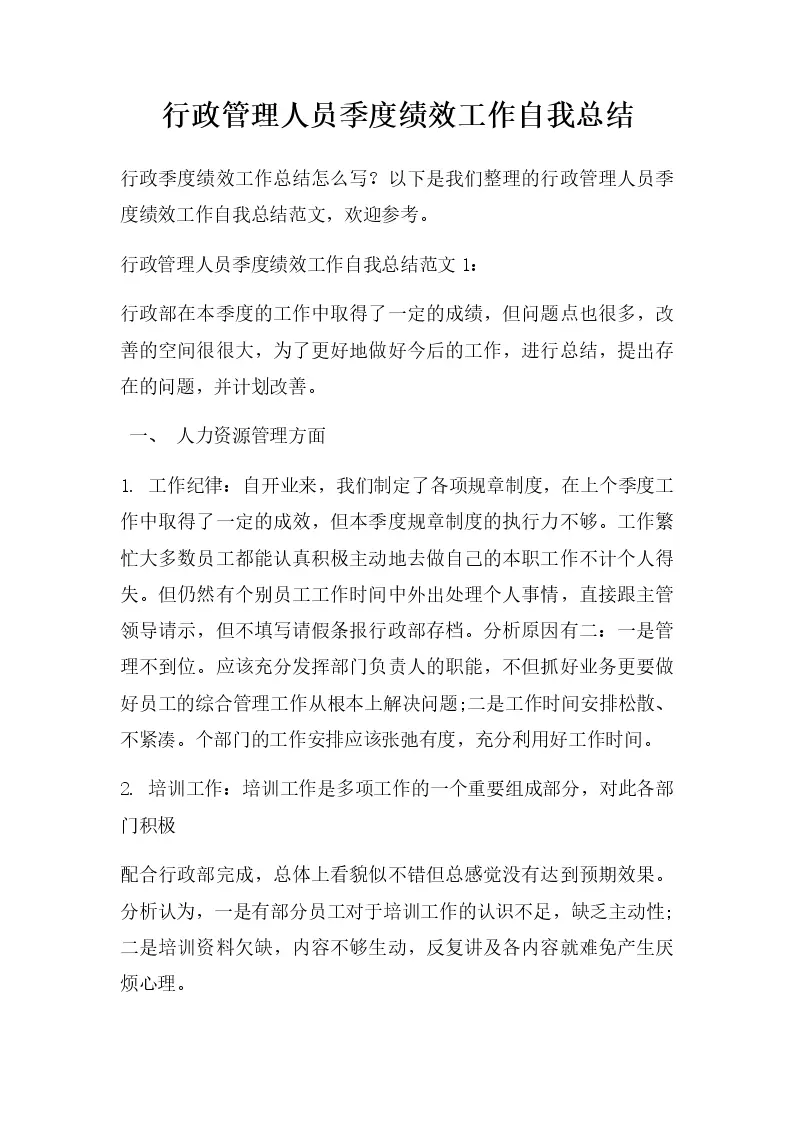 行政管理人员季度绩效工作自我总结