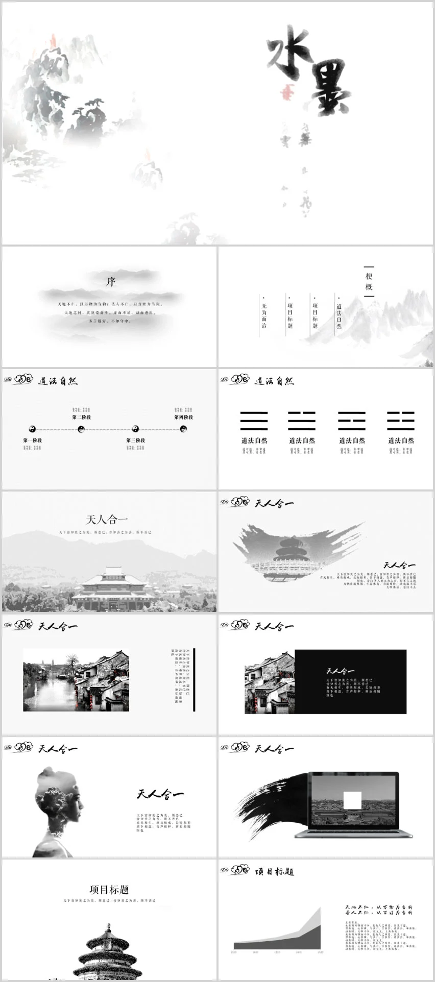 水墨朦胧中式景观PPT模板