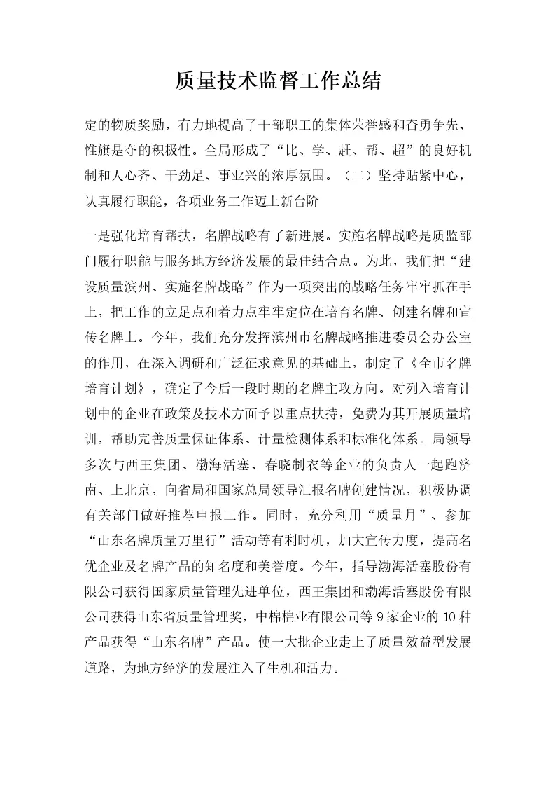 质量技术监督工作总结