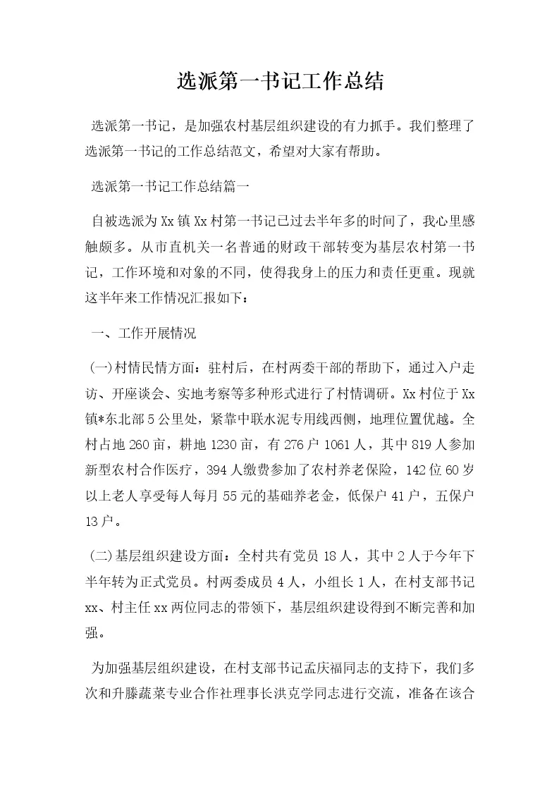 选派第一书记工作总结