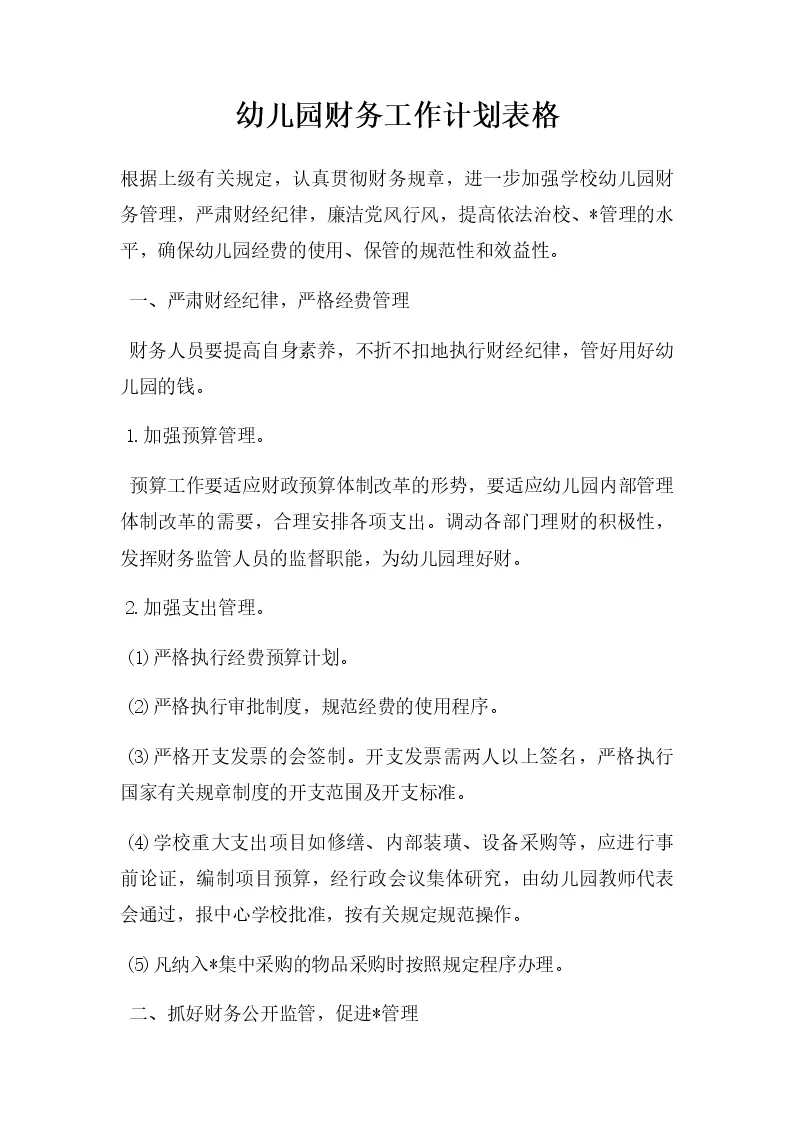 幼儿园财务工作计划表格