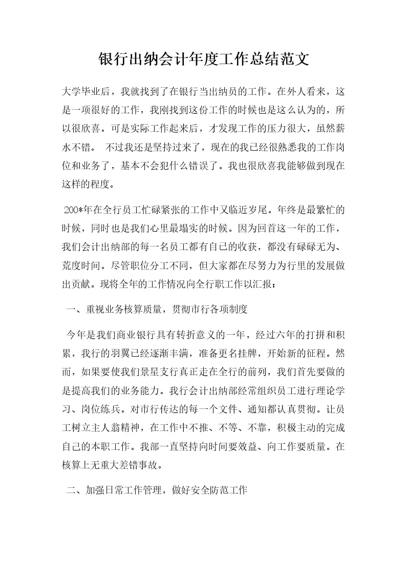 银行出纳会计年度工...