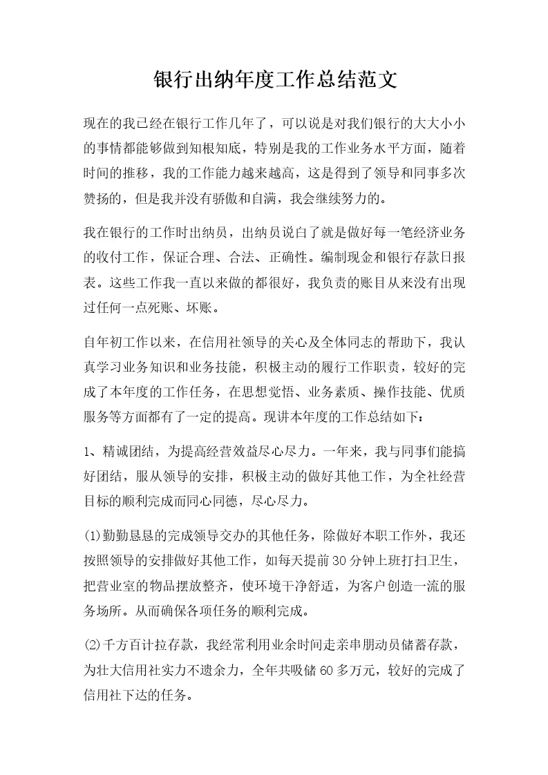 银行出纳年度工作总...