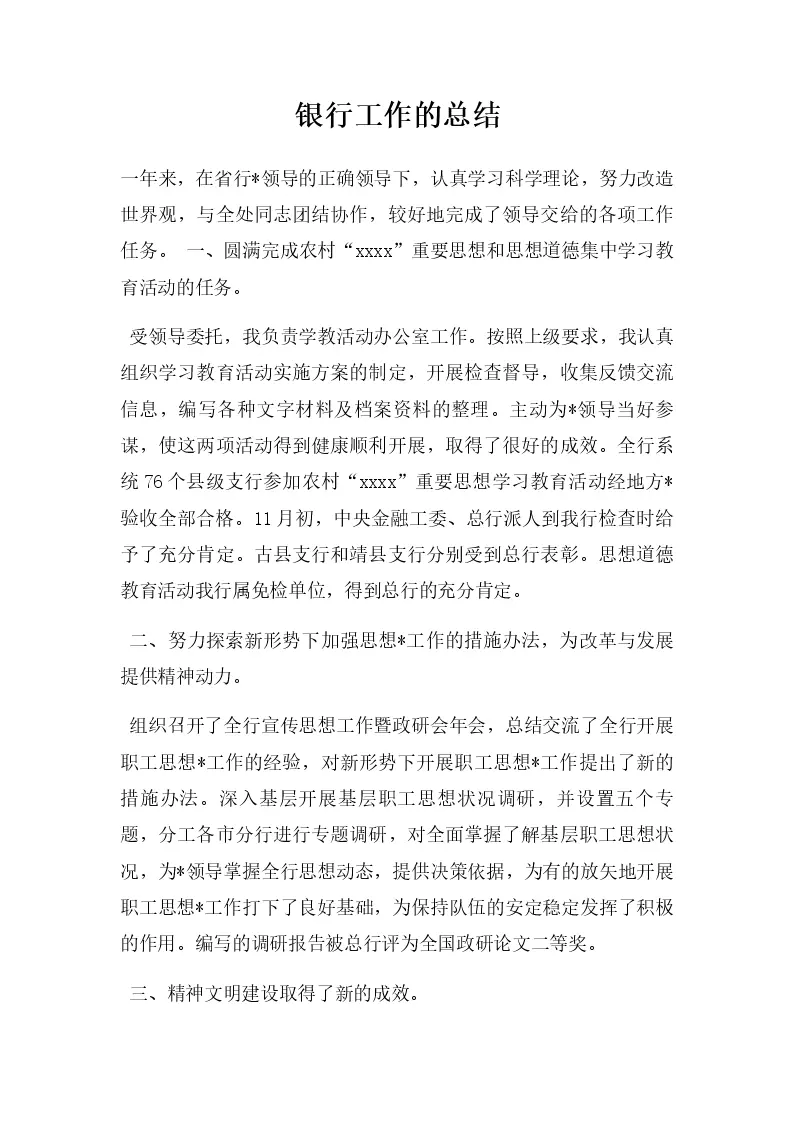 银行工作的总结