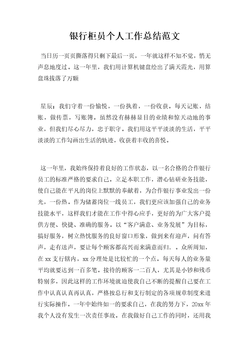 银行柜员个人工作总结范文
