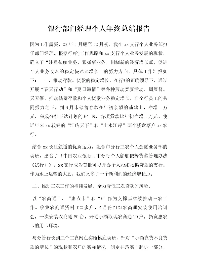 银行部门经理个人年终总结报告